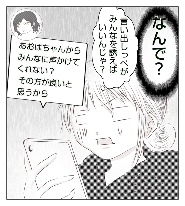 辛田さんの言うみんなって、おそらく辛田さんが私の愚痴を言っていたお友だちも入ってるようだったし、全員が仲良いメンバーだったらまだしも、とても参加する気持ちにはなれません。