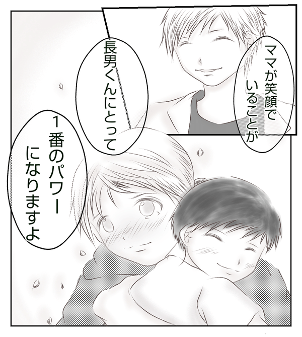 先生から言われたことは「そんな眉間にシワ寄った顔して一緒にいたら、長男くんが不安になるでしょ。笑顔で接してあげて。ママが笑顔でいることが子どもにとって一番の力になるんだよ。」と…。