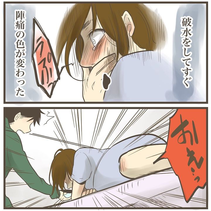 陣痛の色が変わった瞬間にめまいと吐き気に襲われ、体が裏返るほどの痛みに体が硬直しました。