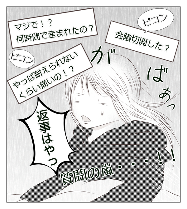 なんでメールをすぐ返したかというと、出産直後でもちろん疲れてはいたのですが、産後ハイというやつでしょうか。興奮してなかなか眠れなくて…!