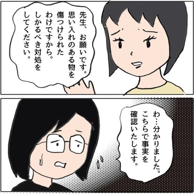 事件を知ったまゆみさんは、あおいちゃんとりんちゃんの親と話してみることにしました。学校から連絡が来る前に伝えてあげた方がショックがやわらぐであろうという配慮からだったのですが…。