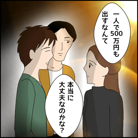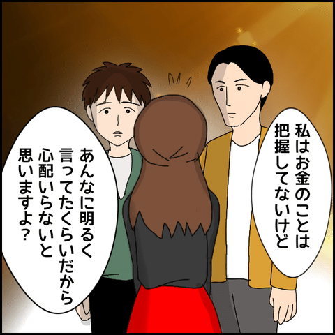 買い付け分の金額をしばらく立て替えて欲しいと友人たちに話すマコト。マコトが電話で席をはずした時、友人はミカに聞きたいことがあると話し…。