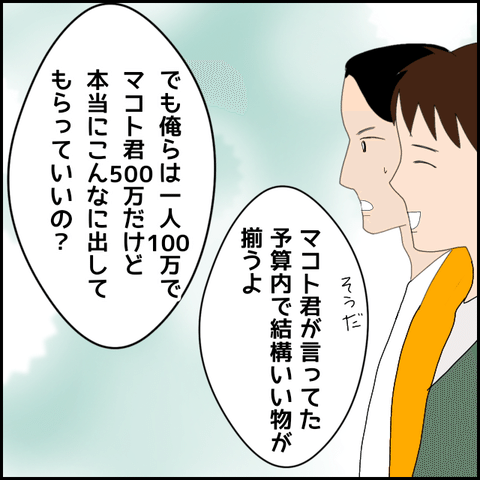 マコトの気前の良さに安心するものの、お金を立て替えて欲しいと言われた友人は少し困惑している様子…。