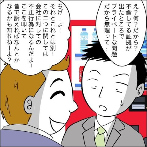 不倫相手の夫から慰謝料300万円を求められた元夫。さもなければ社内に不倫をバラすと脅され、慰謝料免除ならバラしていいと伝えます。クビは免れた元夫に反感を持つ社員の存在も…。そんな中、不倫相手の夫に協力を申し出る社員たちが現れます!
