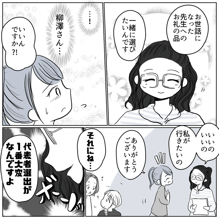 他のクラスの役員さんたちもいるのに、悪意ある言動を連発する山本さん。そのせいで会議中の空気も悪くなっていたけれど、そんな空気を柳澤さんが変えてくれました。