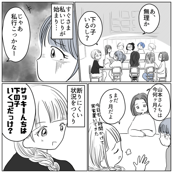 無事に娘の発表会を見ることができた紗希子。最後のイベント「謝恩会」は、年長役員全員参加。さすがに露骨な嫌がらせはないだろうと思っていたが、山本から「買い物はサッキ―が行くから」と一方的に言われ…。