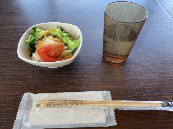 では、私も♪ まずはサラダだけいただいて、様子見です。