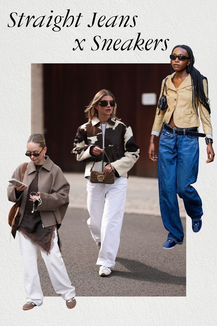 無駄のないシルエットのストレートデニムには、スニーカーで軽やかさを添えて。まっすぐ落ちるラインにカジュアルな足元を合わせることで、気取らないムードに仕上がる。コンパクトなトップスやショート丈のアウターを選ぶと、デニムのシルエットがより引き立つ。ラフでありながらも、どこか洗練された印象を保(たも)てる組み合わせ。