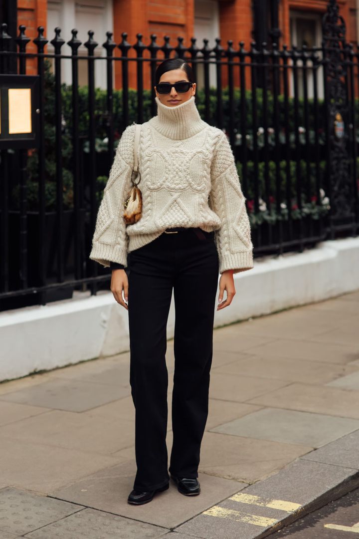 アウターだけでなく、ファネルネックはトップスにも広がりを見せている。ボリュームのあるネックラインが特徴のニットは、シンプルなワンツーコーデでも着こなしにモード感をプラス。顔まわりに自然と視線を集めつつ、防寒性も兼ね備えているのが◎。