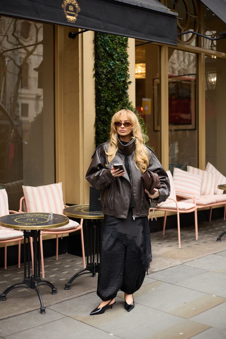 定番であるレザージャケットは、今季もストリートで存在感を発揮。オーバーサイズやボリューム感のあるシルエットが主流になりつつ、テーラードタイプも多く見られ、バリエーションの広がりが印象的。