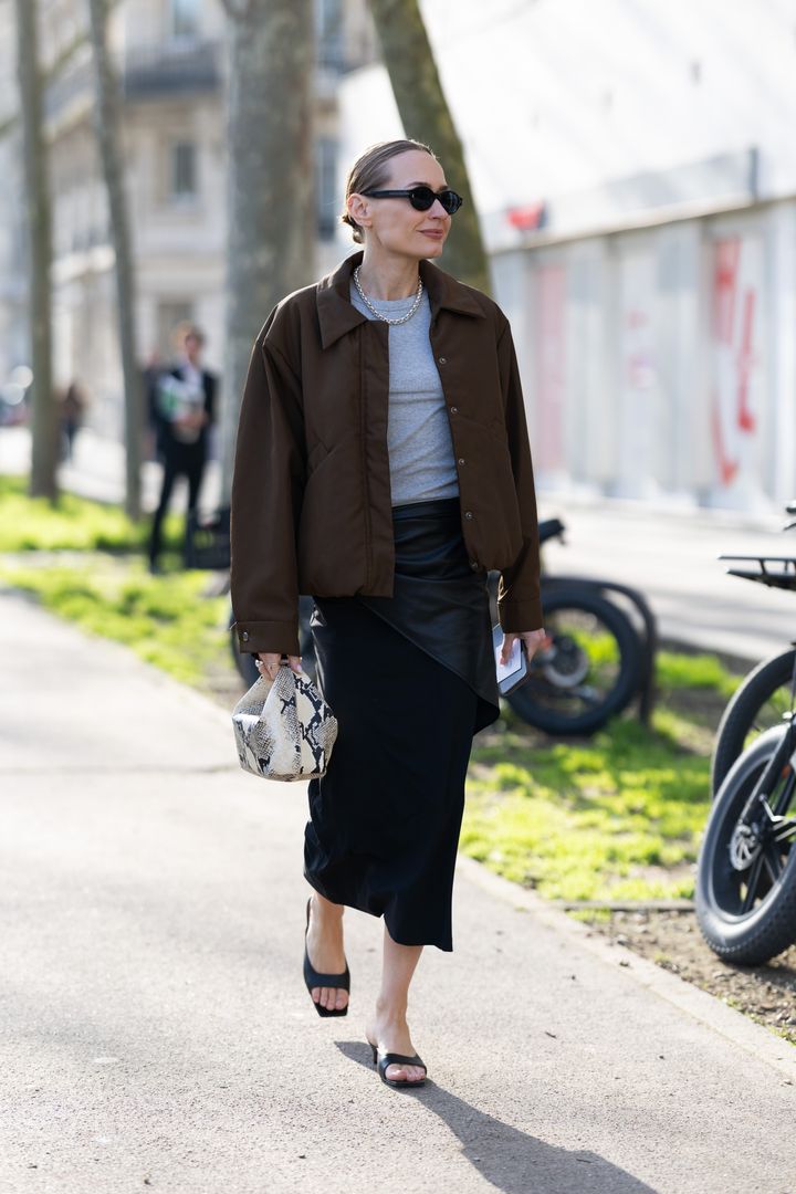 今季は、直線的なシルエットが際立つペンシルスカートが再浮上。ジャケットやシャツといったクラシックなアイテムとの組み合わせはもちろん、スポーティーなブルゾンや異素材トップスと合わせることで、コントラストの効いた着こなしも目立った。