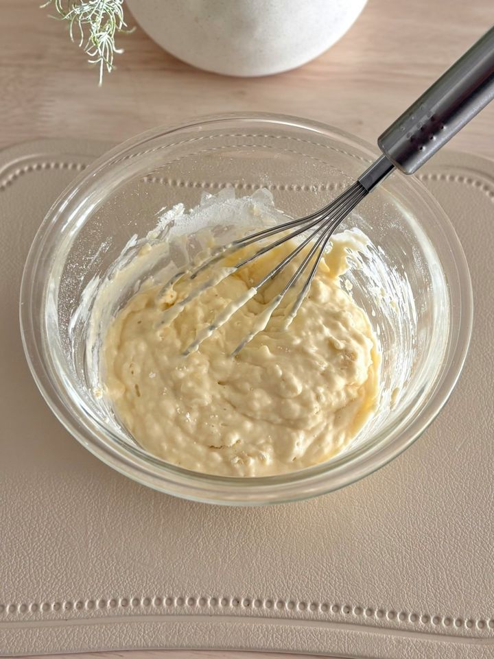 バターを加えたあとは浮いているバターが見えなくなるまでしっかり混ぜてください。
