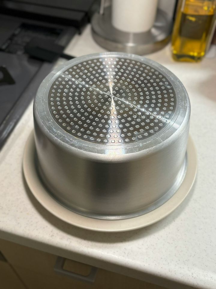 焼けたパンケーキはお皿に積み重ねますが、そのまま焼き続けると冷めて乾燥してしまうので4枚目写真のように鍋など高さのある物で蓋をすると保温できてしっとり美味しく食べられます。 X「麦ライス(シェフ)」(https://x.com/HG7654321/status/2020031266863899020?s=20,2026年3月10日最終閲覧)
