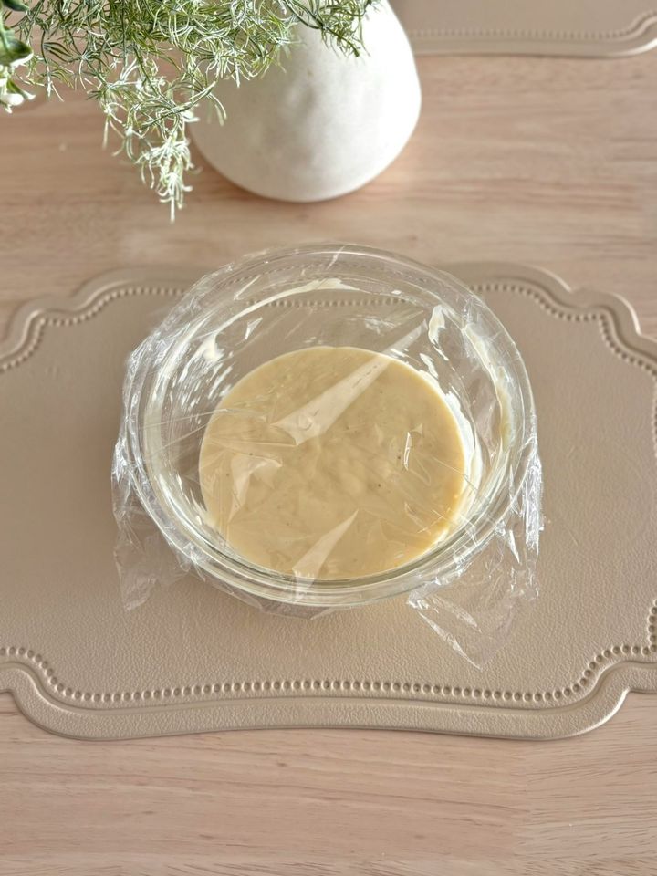 ふるっておいたCを加えてダマが残るぐらいに超さっくりと混ぜたら冷蔵庫で1時間休ませる。