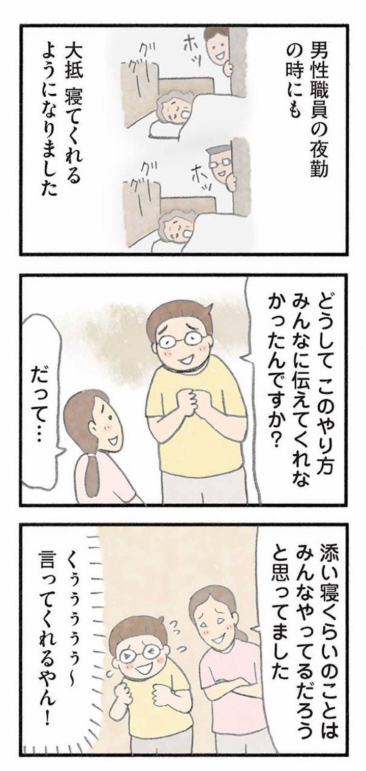 やがて男性職員が担当の日もぐっすり寝るように