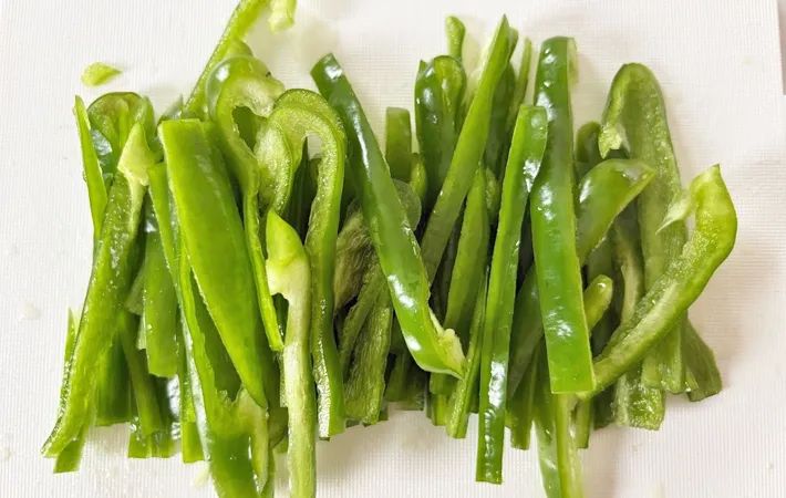 ピーマンは3~5mm程度の細切りにします。