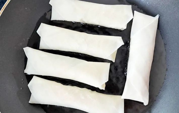 油が温まったら、中火にして春巻きを並べましょう。