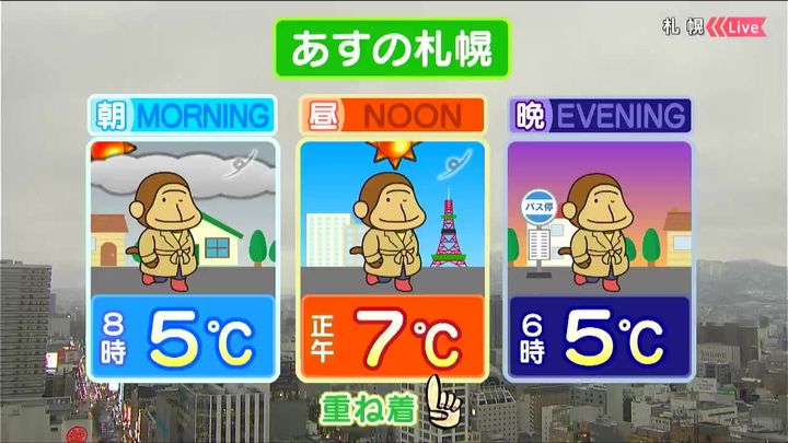 あす24日(火)の札幌です!朝昼晩の天気をもんすけでお伝えします!