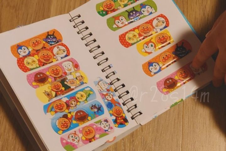 なんと娘さんがシール帳にきれいに並べて貼っていたのは“アンパンマンの絆創膏”!一見すると長方形型のシールに見えますが、絆創膏という点が子どもらしくてかわいいですね。お子さんがちょっとした怪我をしてしまった場合は「どれがいい?」と選べる楽しさがあるかもしれません!