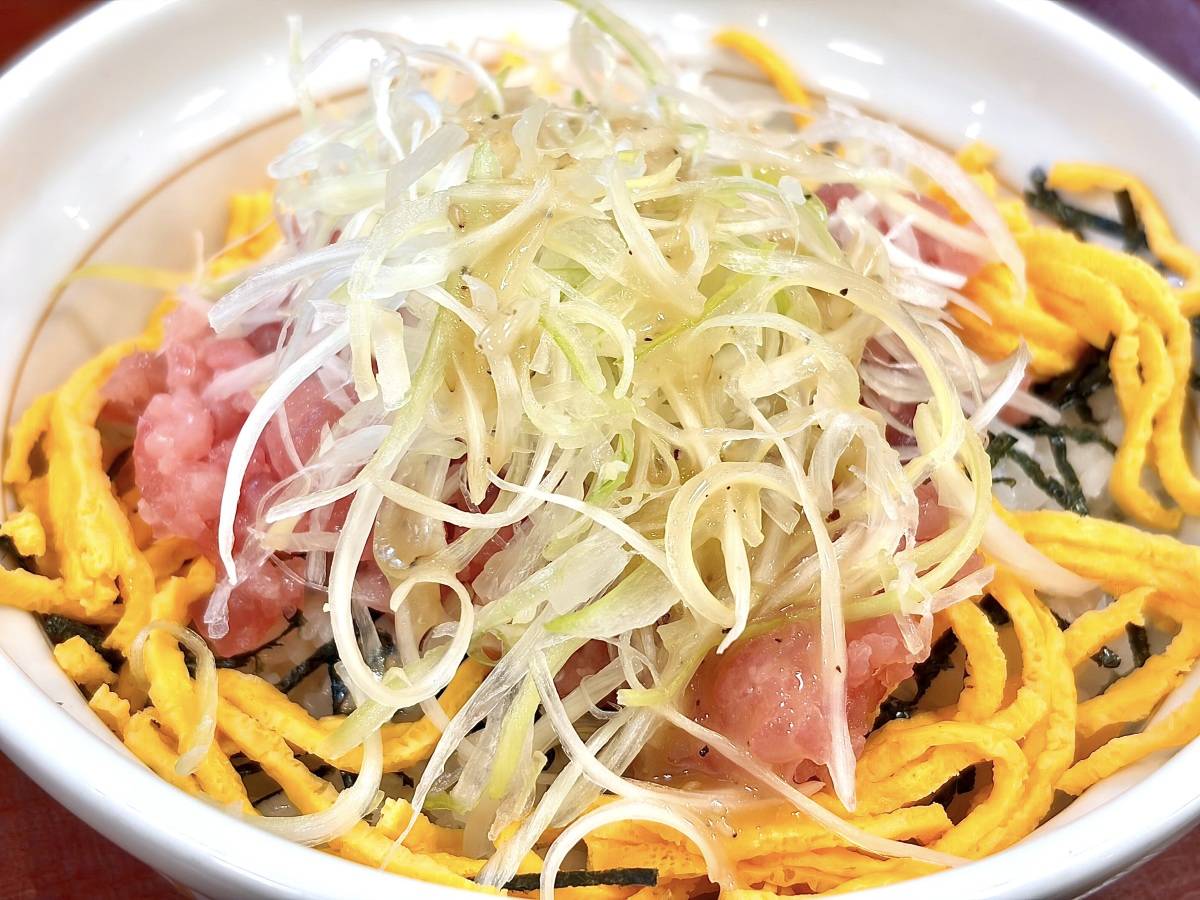 まぐろの旨みを最大限に引き立てる、白髪ねぎ特有の程よい辛み。
