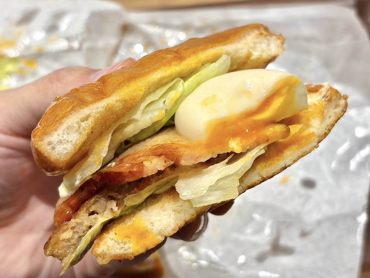 ふんわり食感のバンズにサンドされた、豊富な種類の具材。