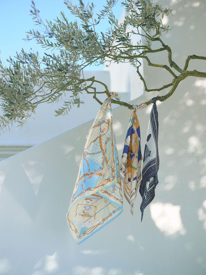 絵画のような繊細な図案と豊かな色彩をまとったスカーフは、装いにアクセントを添える「究極のアクセサリー」としてさまざまな地で親しまれている。