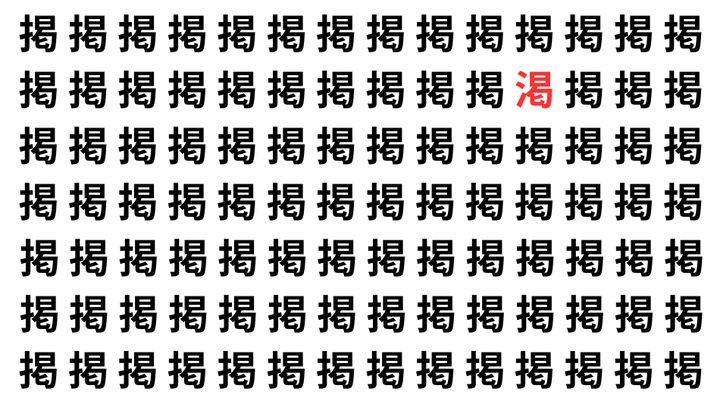 たくさんの「掲」の中に、よく似た別の漢字が1文字だけ隠れています。