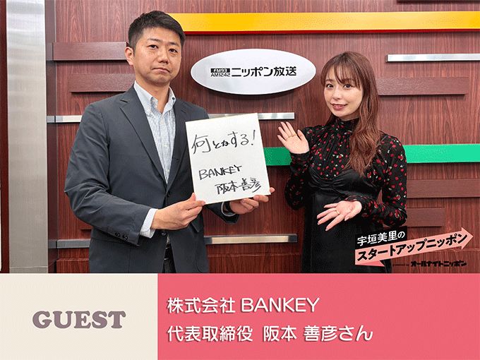 第64回のゲストには株式会社BANKEYの創業者 兼 代表取締役の阪本善彦が登場。同社は銀行口座間決済サービスを展開しており、阪本は「従来の銀行振込の仕組みをベースにしながら、より簡単でスムーズにお金のやり取りができる新しいキャッシュレス決済インフラ」と説明した。