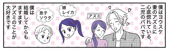 僕はヨウスケ、妻のアズミとのあいだに子どもが2人いる。でも子どもがいるからって、僕たちがラブラブじゃなくなる理由にはならない。結婚して10年も経つけれど、僕は今でも変わらず、いや結婚したときよりもずっとアズミのことが大好きだ。だけどどんなに愛の言葉を囁いても、今のアズミは完全にスルー。何とかしてアズミにもう一度恋に落ちてほしい……。ロマンチストな僕は、リアリストなアズミを振り向かせたいと必死で考えているのだった。