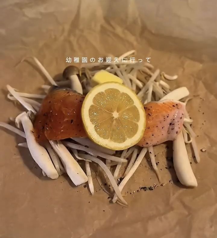 3. 【ヘルシー時短レシピ】蓋を開けたら5品完成!シートに包んで10分放置するだけの『鮭のレモンバター醤油蒸し&副菜4品』がQOL爆上がりの神アイデアだった
