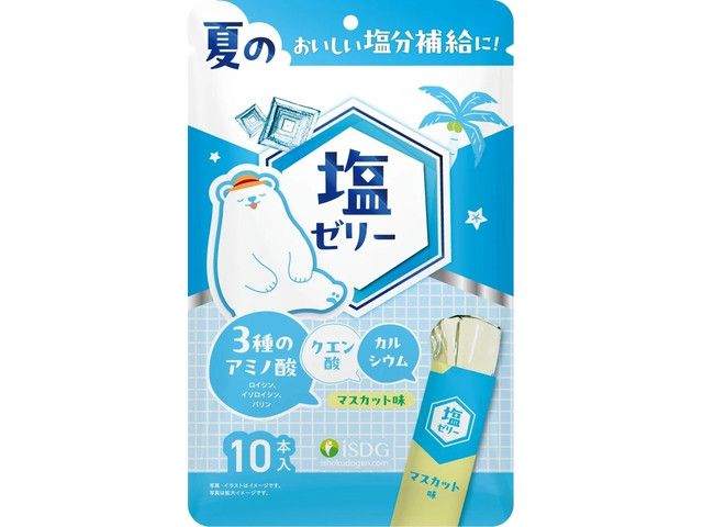 塩分補給と栄養補給を同時に行えるスティックタイプのゼリーです。塩分に加え、 3種類のアミノ酸(※)・クエン酸・カルシウムを配合し、暑い季節の体調管理をサポートします。 ※ロイシン、イソロイシン、バリン