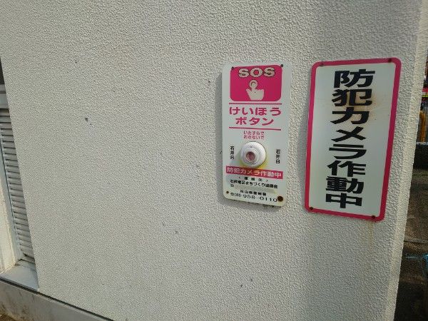 大人がいなくて友達同士で遊びに来ることもあると思います。椿公園はトイレの外壁に警報ボタンが設置されていました。