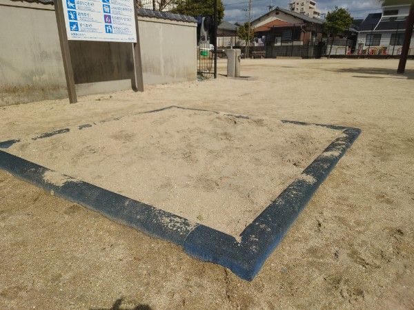 砂場もあるので、砂場道具を持ってきてガッツリ遊ぶのもいいですね!泥だらけになるのでもっと小さい頃は着替え一式を持って公園に出かけたものです。今日は砂場道具を忘れて走り回る遊びをしていました。