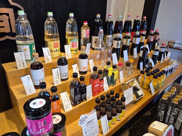 醤油・だし醤油・味噌・なべの素はもちろん、ここでしか手に入らない商品もそろっていて、試飲もできます!