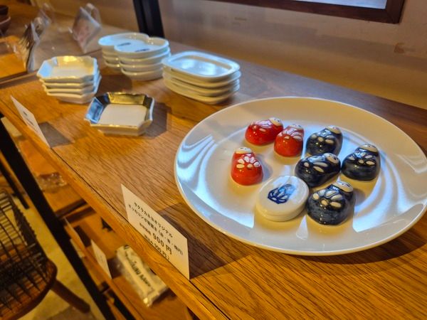 調味料のほかにも、オリジナルのグラスや箸置き、バッグ、職人が手がけた小皿や醤油さし、さらにはお店の方が県内外からセレクトしたグッズなど、お土産や来店の記念にもぴったりな、多彩でかわいらしい雑貨が目白押しです。