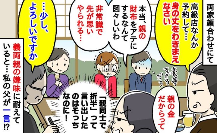 両家顔合わせで嫌味を言う義両親に実父が放った言葉