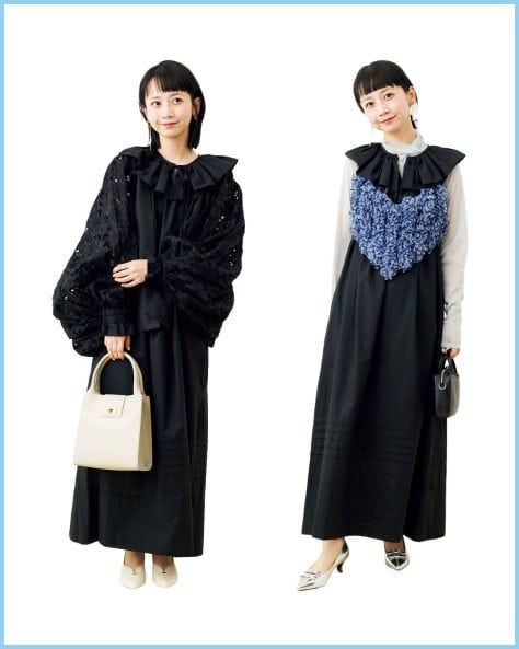 三戸なつめさんは  作品打ち上げのお食事会でキレイめ黒ワンピースを着まわし