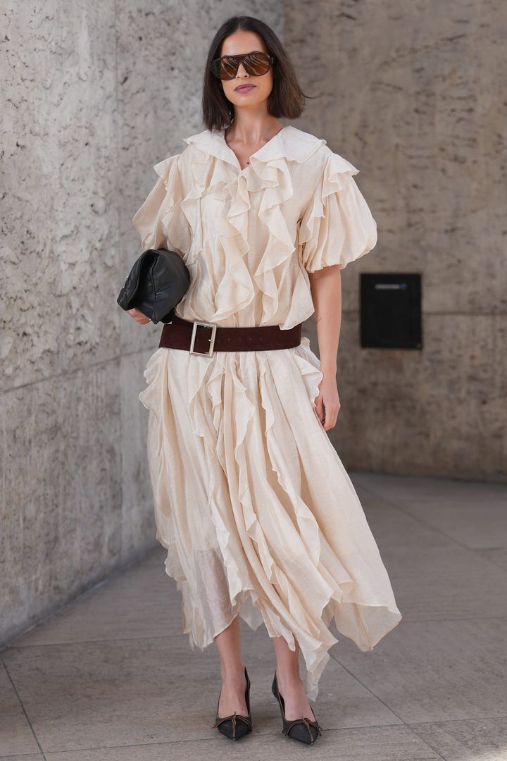 歩くたびに揺れ、風になびくフリル&ラッフルも見逃せない。フェミニンかつエアリーな見た目は、ぽかぽか陽気の春のお出かけコーデにぴったり。ベルトでウエストマークしたり、ビッグサングラスを添えたりと、小物使いで着こなしアレンジも自在。