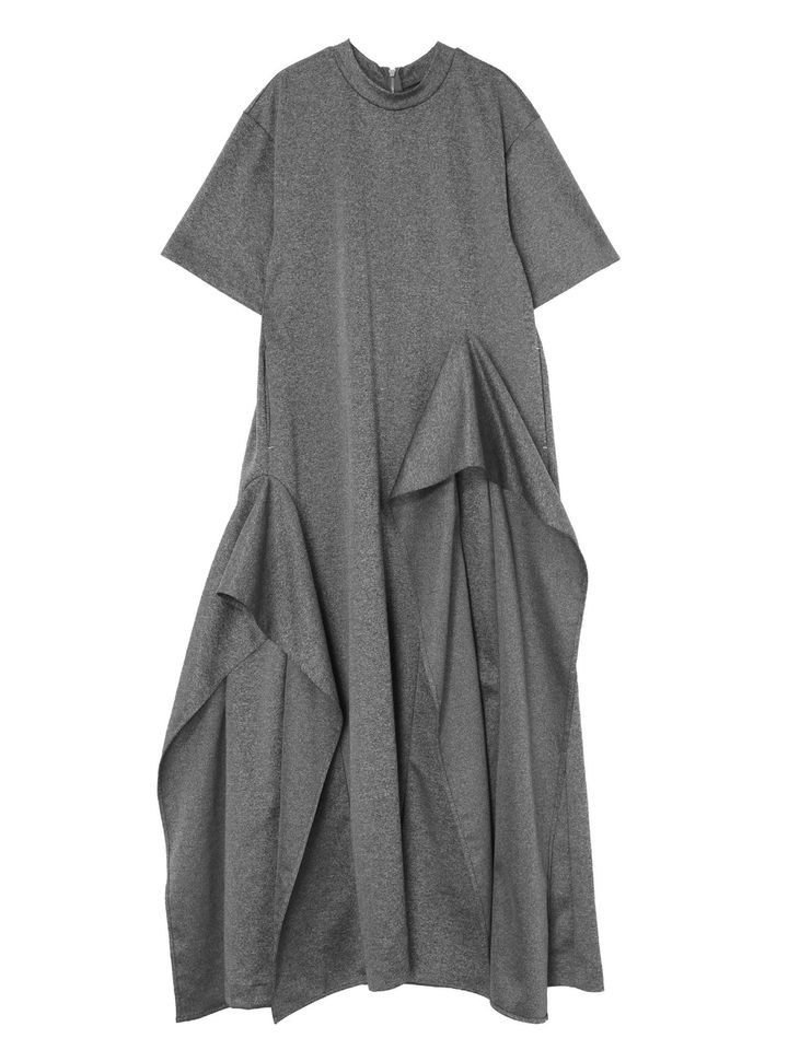 ほどよくハリのあるジャージー生地を使用。定番のAラインシルエットになだらかなラッフルディテールを施すことで、構築的かつ大人っぽいこなれた最旬デザインに。