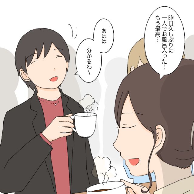 1人だと、疲れて帰ってもすぐお風呂に入れて、子どもたちを洗う手間もありません。好きなものを買って食べ、そのままゆっくり眠って、朝も誰にも起こされずに目覚める。そんな何気ないことで、私はこの上ない幸せを噛みしめていました。心なしか、肌のツヤまで良くなった気がします。