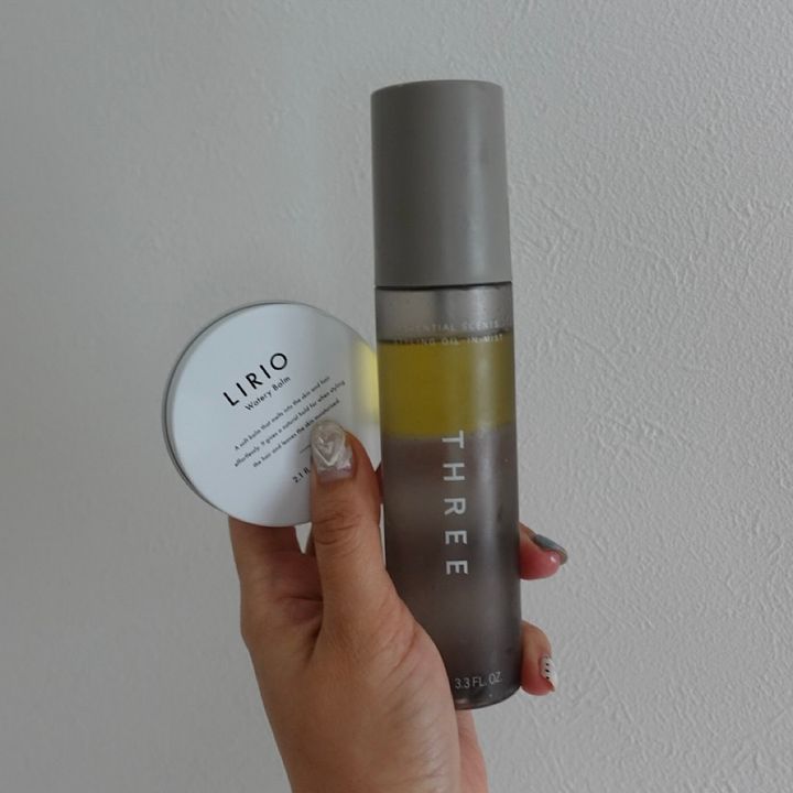 使い方としては、髪の毛を少し濡らした状態でTHREEのオイルインミストを全体にかけてもみもみ。形をなんとなく作ったらLIRIOのバームを上から馴染ませて微調整して完成。これだけ。