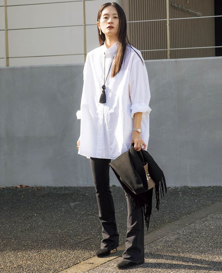 atelier ST,CAT代表 林 聖子さんに「この春リアルに着たいもの」を取り入れた着こなしを披露していただきました。ビッグシャツに雰囲気ある小物やジュエリーなど、今季のトレンドが垣間見えるラインナップは、ぜひお買いものリストの参考にしてみて。