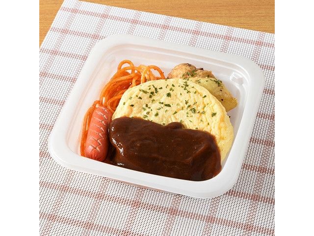 デミグラスソースをかけた、ふんわり食感のオムレツです。ポテト、ケチャップで和えたスパゲッティ、赤ウインナーを盛り付けました。 ※宮崎県、鹿児島県では取り扱いがございません。