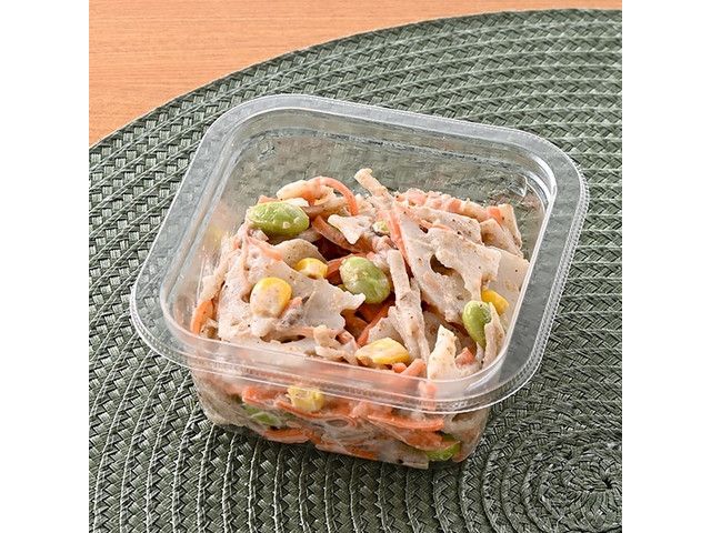 3種の根菜(ごぼう、れんこん、人参)と枝豆、コーンをコクのあるマヨソースとごまで和えました。食物繊維が3.1g摂れる和風サラダです。 ※宮崎県、鹿児島県では取り扱いがございません。