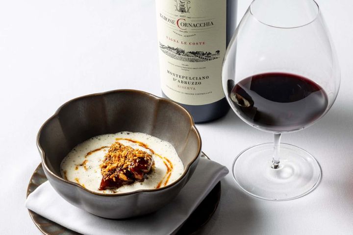 また、「ラムネックのブレゼ」には、アブルッツォ州を代表する「モンテプルチアーノ ダブルッツォ リゼルヴァ」を。熟成による凝縮感のある果実味と滑らかなタンニン、複雑で奥行きのある余韻が、じっくりと煮込まれた羊肉の味わいに寄り添います。セルジオ・ハーマン氏の哲学が息づく、ここでしか味わえない美食の旅を堪能してはいかがでしょう。