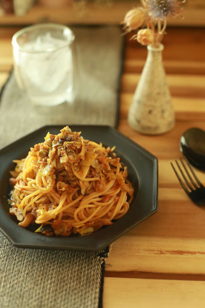 荒めに刻んだキャベツを挽き肉に見立てたベジラグーパスタ。赤味噌を加えたコク深いソースが味の決め手。手早く作れて満足感のある一品は、休日のランチにおすすめ。
