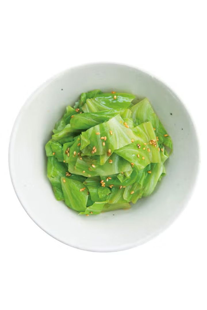 火を使わずに作れる簡単ナムル。新鮮でやわらかい春キャベツは電子レンジで軽く加熱するだけで、ほどよくシャキッとした食感に。ごま油とにんにくの香りが食欲をかき立てる。