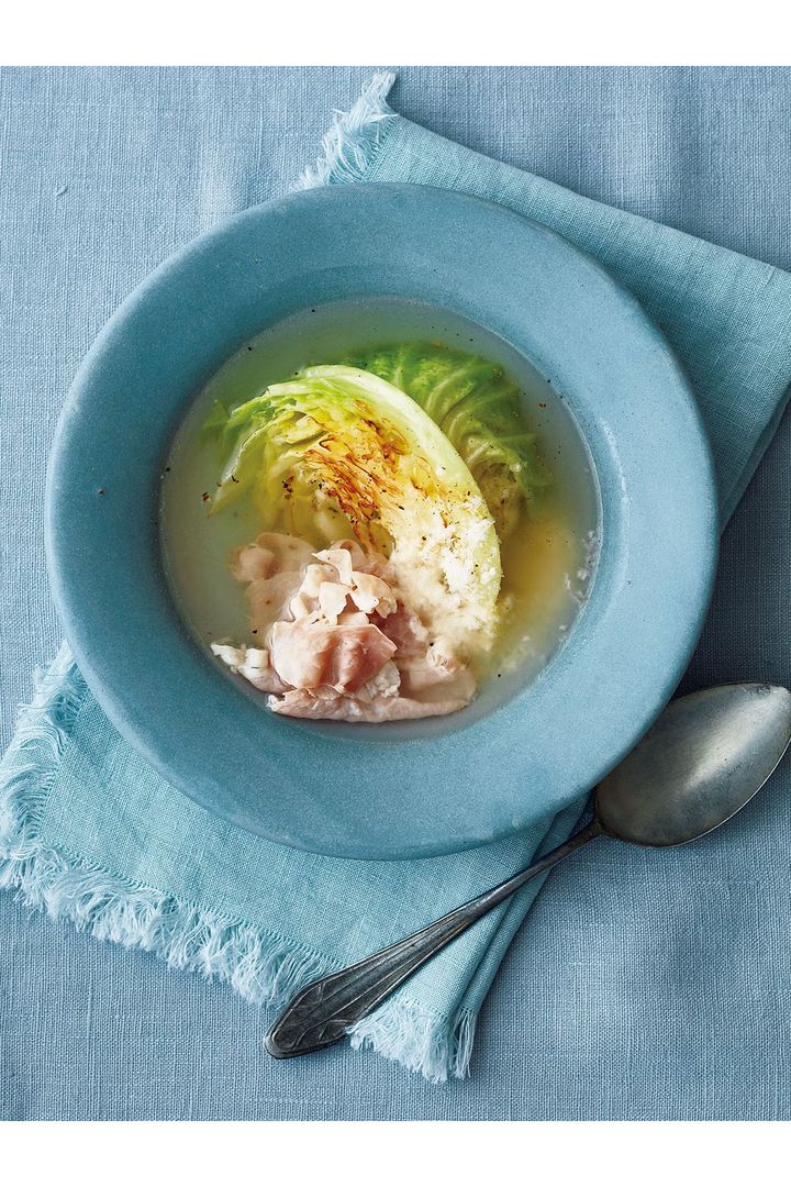 生ハムとパルミジャーノ・レッジャーノをだし代わりに使えば、いつものキャベツスープが格段においしくなる。素材のうま味が溶け出した軽やかな味わいのスープは春先にぴったり。