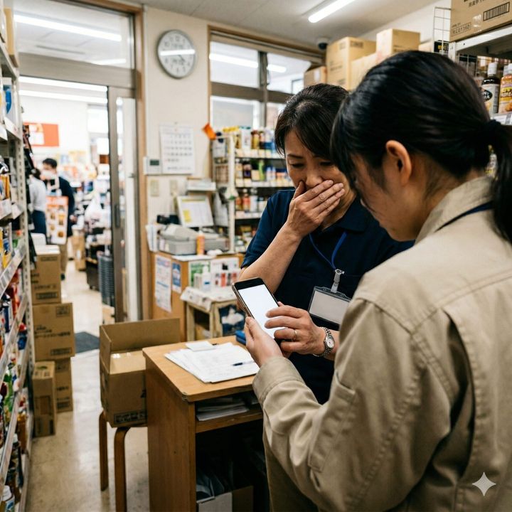 私がスマホを手に取ろうとすると、社員さんが気まずそうに自分のスマホ画面を見せてきたのです。