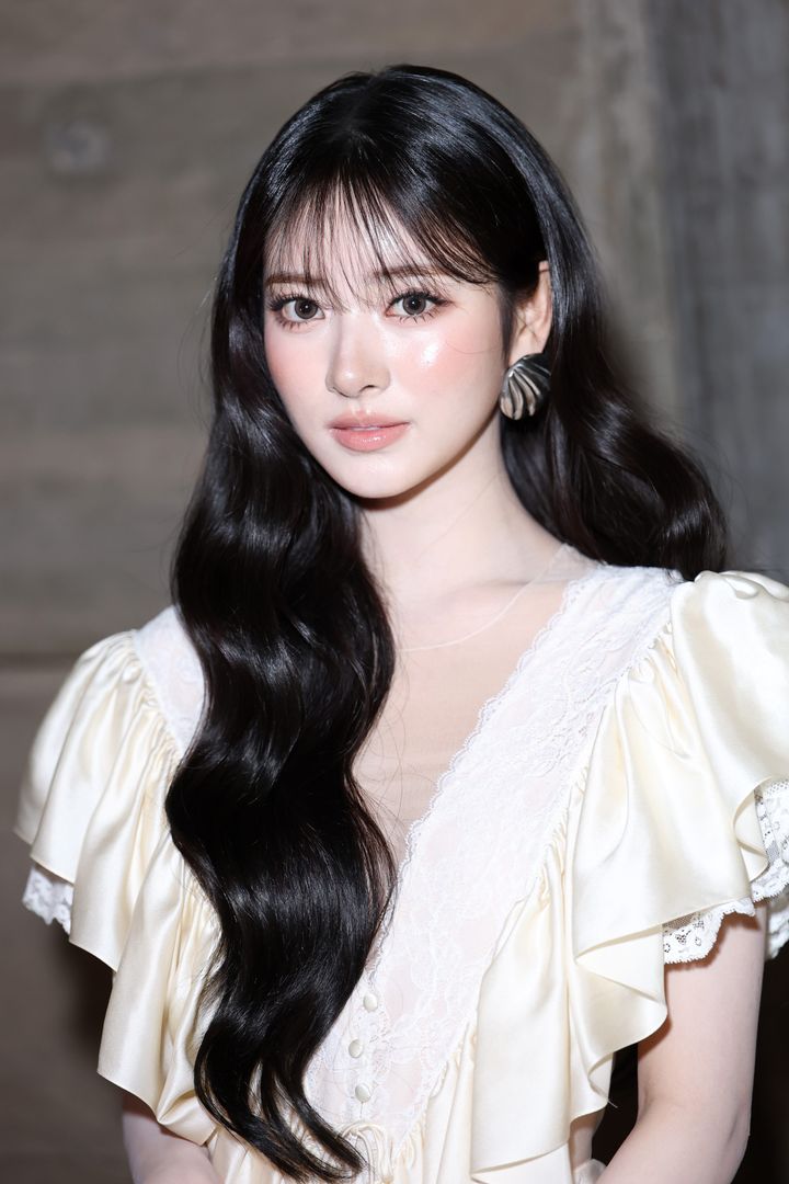 ハン・ソヒもトレンドのレイヤーカット × Cカールを取り入れたスタイルに。顔まわりはフェイスラインにぴったり沿わせるのではなく、あえてエアリーに空間をもたせることで、立体感のある仕上がりに。